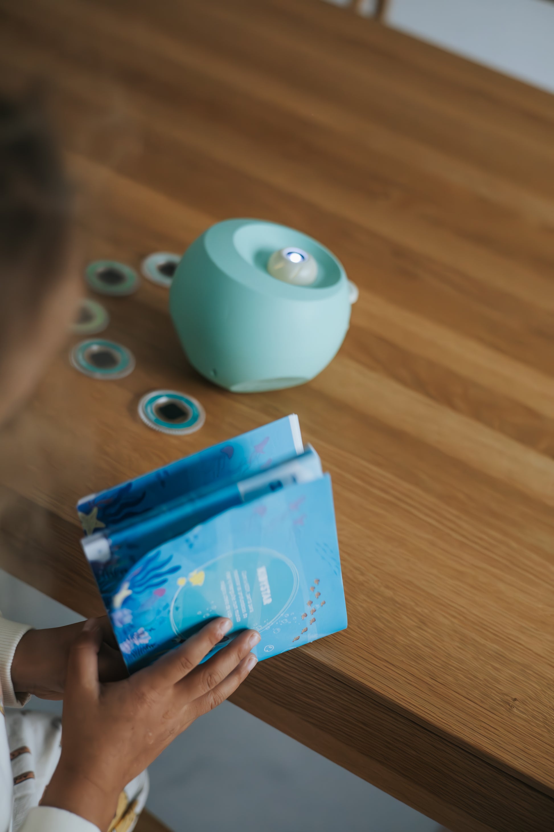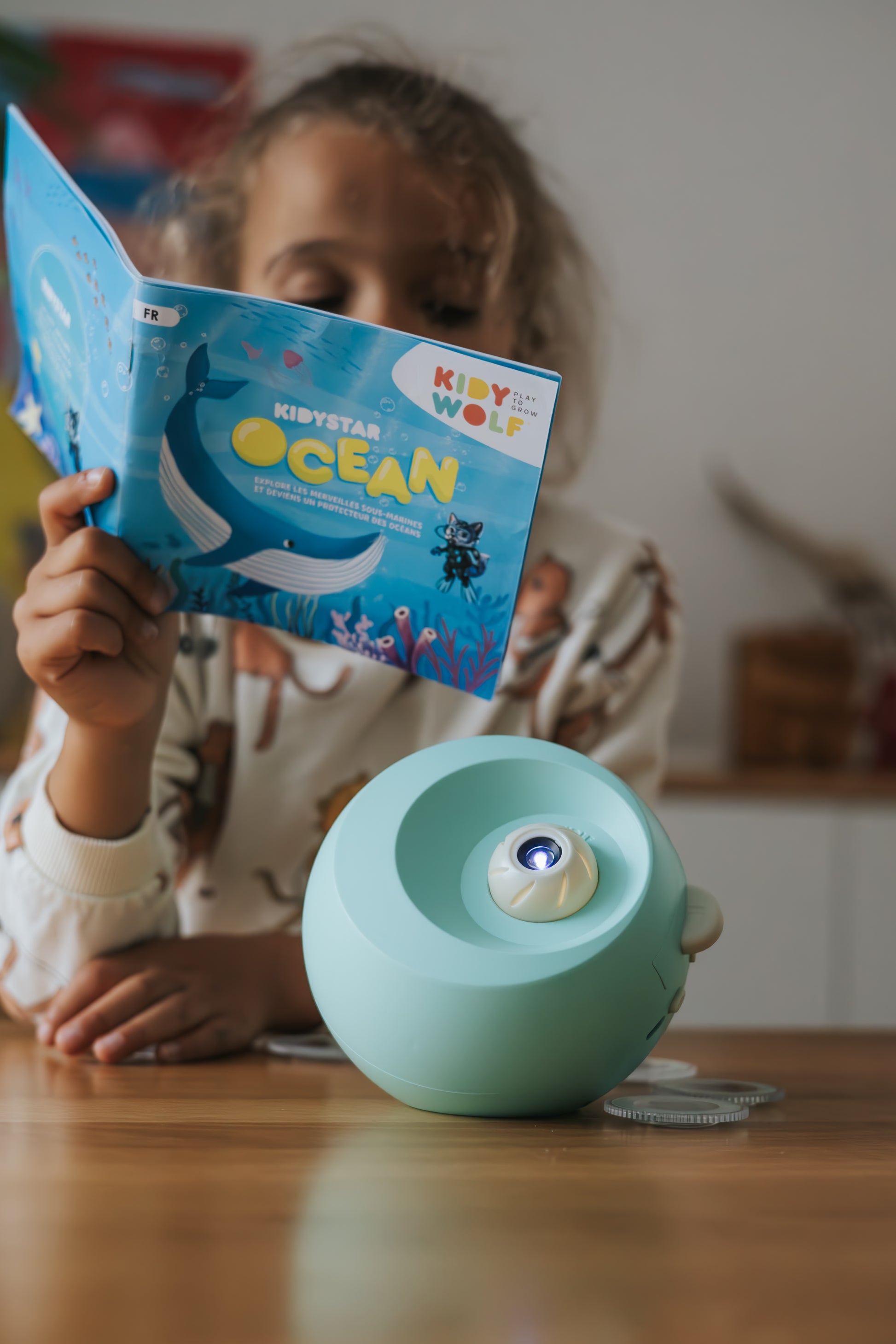 Een rustgevende manier om de dag af te sluiten zonder schermtijd. De KIDYSTAR prikkelt de verbeelding met zachte lichtprojecties zonder blauw licht.