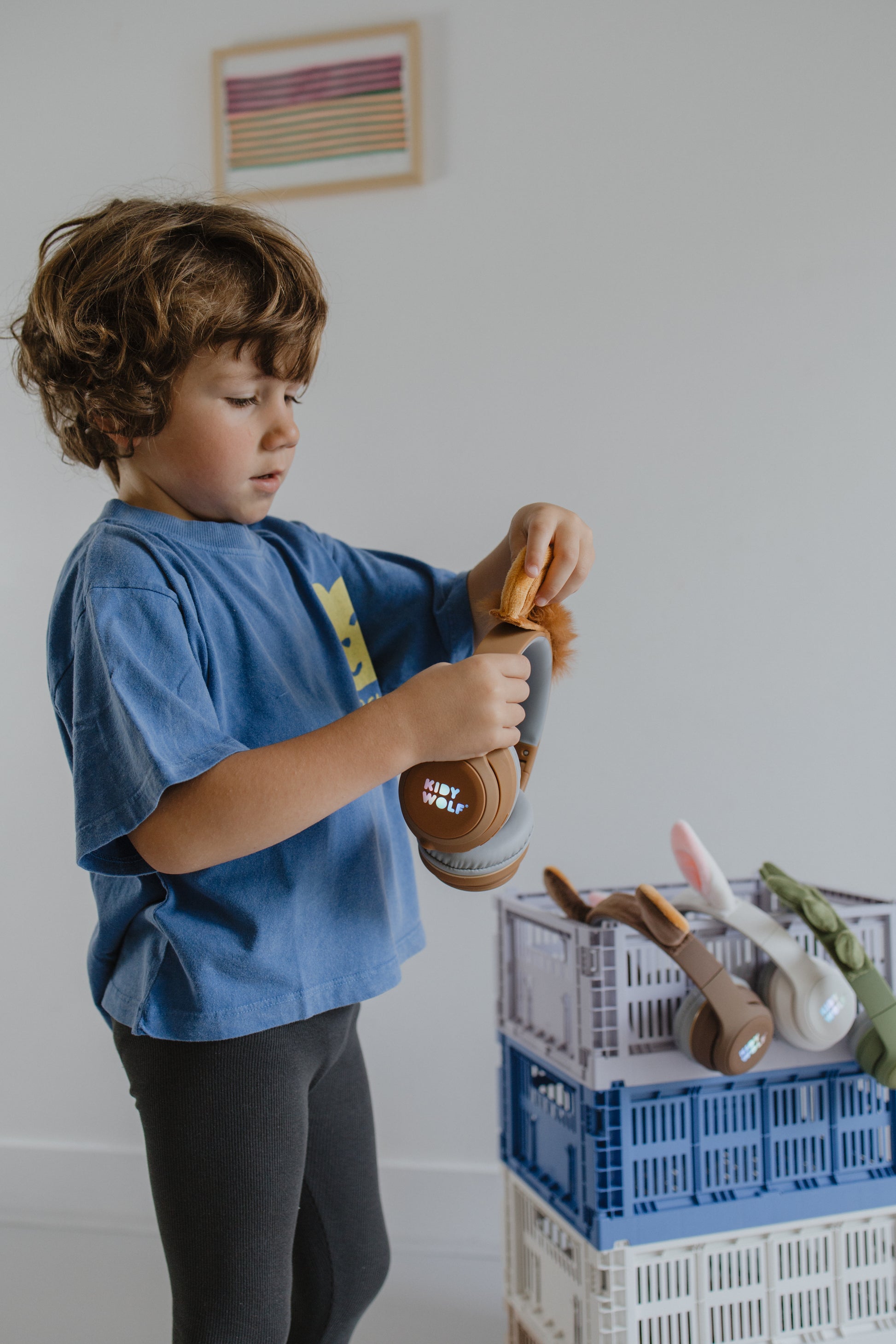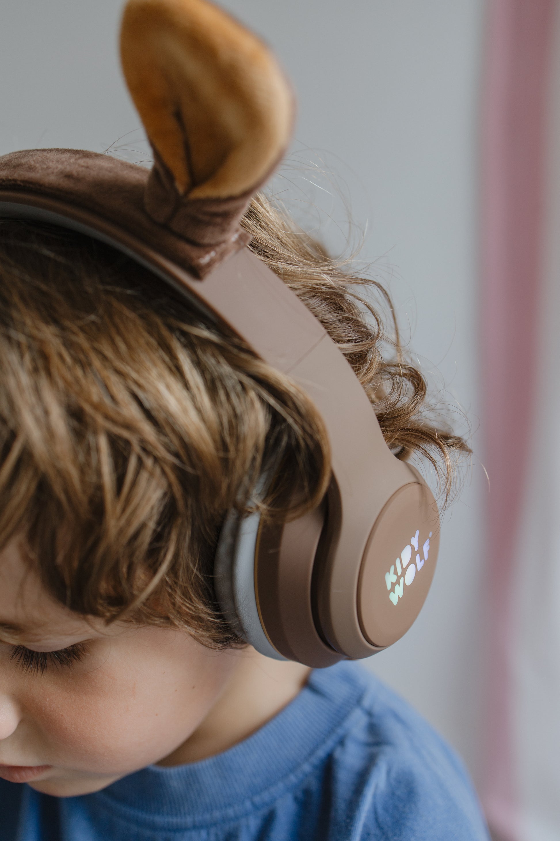De KIDYEARS koptelefoon van KidyWolf is speciaal ontwikkeld voor kinderen vanaf circa 4 jaar. Deze kinder-koptelefoon combineert veilige luisterervaring met een speels design dankzij de magnetische berenoren, ideaal voor muziek, films, spelletjes of onderweg.