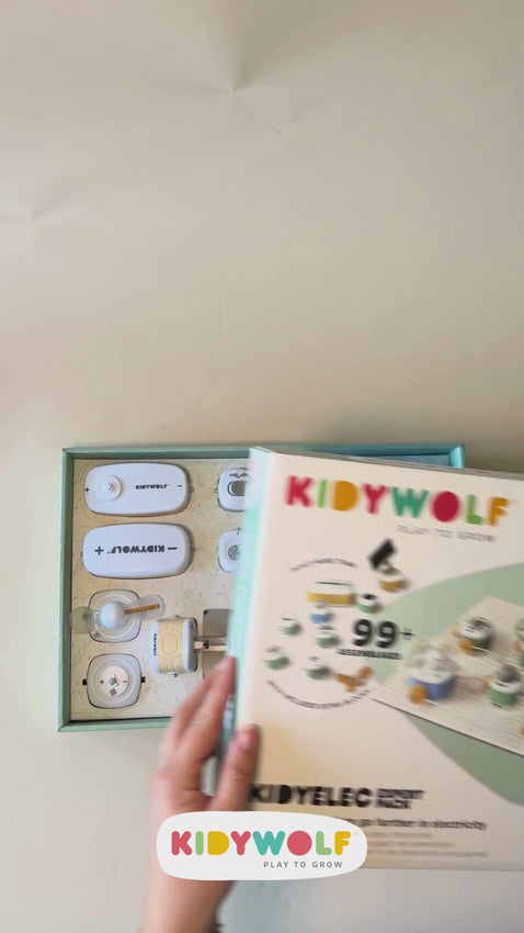 Met de KidyWolf Kidyelec-Expert My First Electricity Kit (18 stukken) maken kinderen vanaf circa 7 jaar kennis met elektriciteit op een speelse én veilige manier. Met 18 componenten kunnen kinderen zelf schakelingen bouwen, lampjes laten branden en ontdekken hoe stroom werkt – zonder ingewikkelde theorie. Ideaal voor nieuwsgierige jonge geesten die graag zelf willen uitzoeken hoe dingen werken.