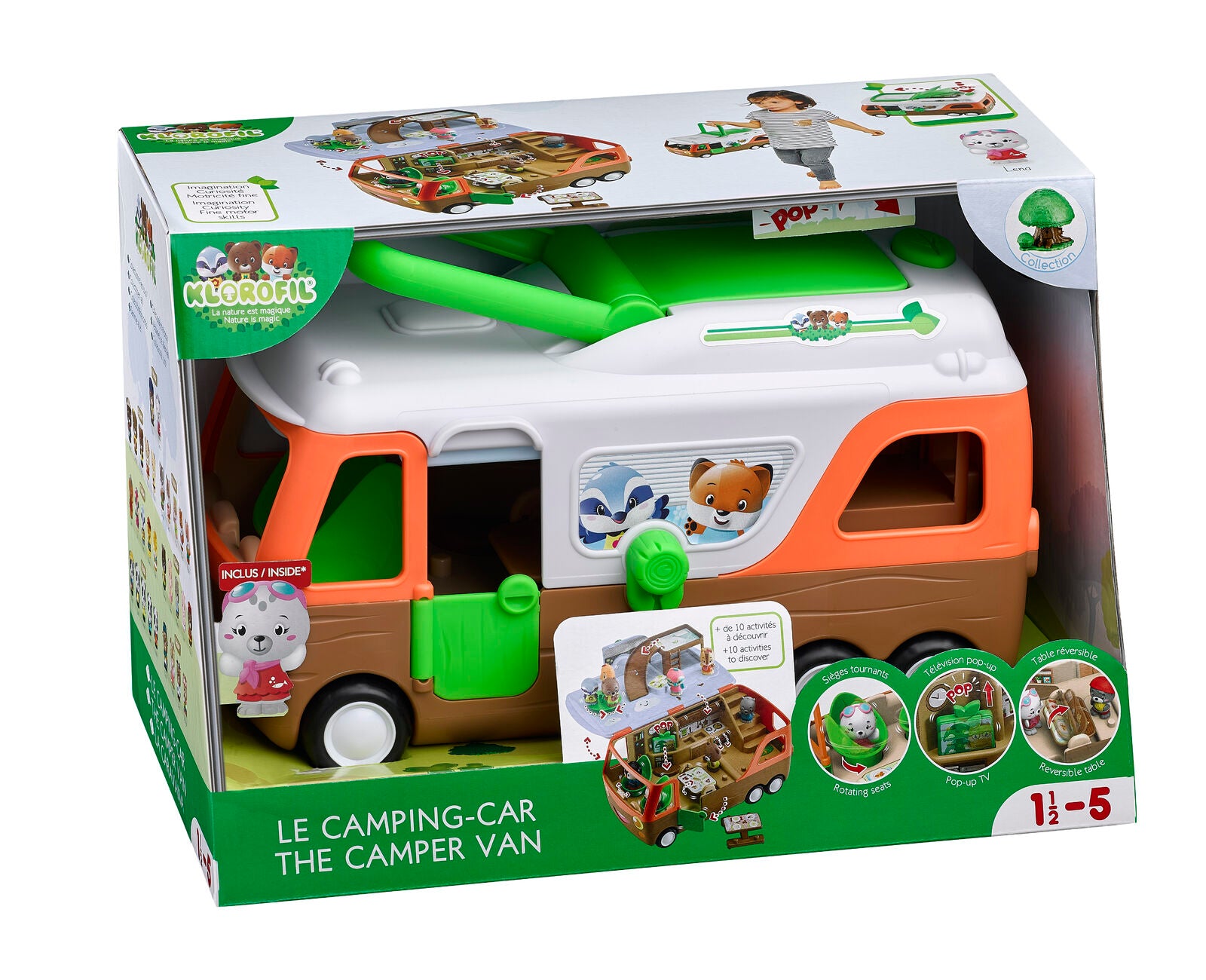 Ga op avontuur met de Klorofil Camper! Deze vrolijke camper zit boordevol verrassingen en biedt kinderen eindeloos speelplezier. Druk op het dak en ‘POP’ – de camper klapt open en onthult een volledig ingericht vakantiehuisje op wielen, met plek om te slapen, koken en relaxen.