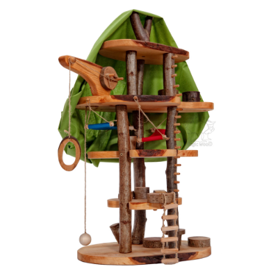 - de groene doek geef de impressie van bladeren en nodigt uit om te spelen en te verstoppen in dit mooie boomhuis