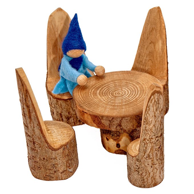 Het meubelsetje is gemaakt van duurzaam Europees Elzenhout en Hazelaar en is geolied met plantaardige lijnzaadolie. Doordat het hout alleen geolied is en niet gelakt behoudt het zijn natuurlijke textuur.