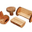 Het meubelsetje is gemaakt van duurzaam Europees Elzenhout en Hazelaar en is geolied met plantaardige lijnzaadolie. Doordat het hout alleen geolied is en niet gelakt behoudt het zijn natuurlijke textuur.