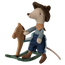 Met de Cowboy Mouse on Rocking Horse – Little Brother wordt elke speelwereld een stukje wilder. Deze set bestaat uit een kleine cowboymuis met een vilten hoed, sjaaltje en een houten hobbelpaard, waarbij het zadel een uitsparing heeft voor zijn staart. De muis is voorzien van magneten in zijn handen, zodat hij stevig aan de handvatten van het paard kan blijven zitten.