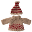 Deze gebreide trui en muts zijn de perfecte kledingstukken voor Moeder Muis tijdens de koudere dagen. De trui heeft een mooi patroon dat gebaseerd is op de oude breitradities in Scandinavië.