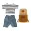 Een los kledingsetje voor de Big Brother / Big Sister muis. Het bestaat uit een gestreept t-shirtje, een korte blauwe broek en een bruine tas.Een mooie set kleding om aan te trekken naar school of naar de kinderopvang. Let op: bij deze set is de Big Brother muis niet meegeleverd.