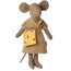 Een klassiek Maileg item; moedermuis. Deze speelgoedknuffel heeft geborduurde oogjes en neusje. Ze heeft ook nieuwe kleren aan! Ze draagt een oranje gestreept truitje, een blauwe geruiten rok en een grappig geel tasje met kaasgaatjes. Deze muis past op meubels en accessoires in de maat muis. Ook is het mogelijk om meer kleding voor deze muis te kopen. Ze past kleding in maat mama/papa.