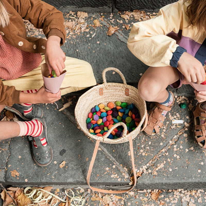 Met deze houten bloemen in twaalf regenboog kleuren kunnen mooie vormen en patronen worden gemaakt. Ze zijn ook leuk om ze te gebruiken om te sorteren of tellen en ze staan leuk ter decoratie op de seizoenstafel!