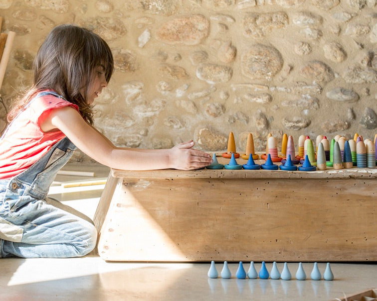 Het Spaanse merk Grapat biedt spelmateriaal zonder instructies, met een open einde. Het uitgangspunt is om kinderen vrij te laten spelen met natuurlijke materialen die de creativiteit en fantasie stimuleren. Losse onderdelen in zachte kleuren moedigen kinderen aan om een eigen bedacht wereldje te vormen. Er is geen juiste of onjuiste manier van spelen met Grapat, om die reden worden alle speelsets zonder instructies geleverd.