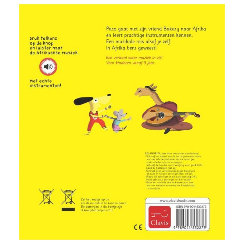 Een verhaal waar muziek in zit! Voor kinderen vanaf 3 jaar. Paco gaat met zijn vriend Bakary naar Afrika en leert prachtige instrumenten kennen. Een muzikale reis alsof je zelf in Afrika bent geweest!