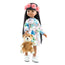 Deze pop nodigt uit om geknuffeld te worden! Ze draagt een jurk (meerkleurig met bloempatroon), schoenen (wit met veters), haarband (roze) en heeft een schattige teddybeer.