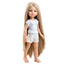 Deze pop nodigt uit om veel geknuffeld te worden! Het lichaam is namelijk heerlijk zacht en ruikt naar vanille. Ze heeft prachtig lang, blond haar en blauwe ogen. Ze draagt een korte witte broek met een print van sterren en een wit shirt met een print van een kroontje.
