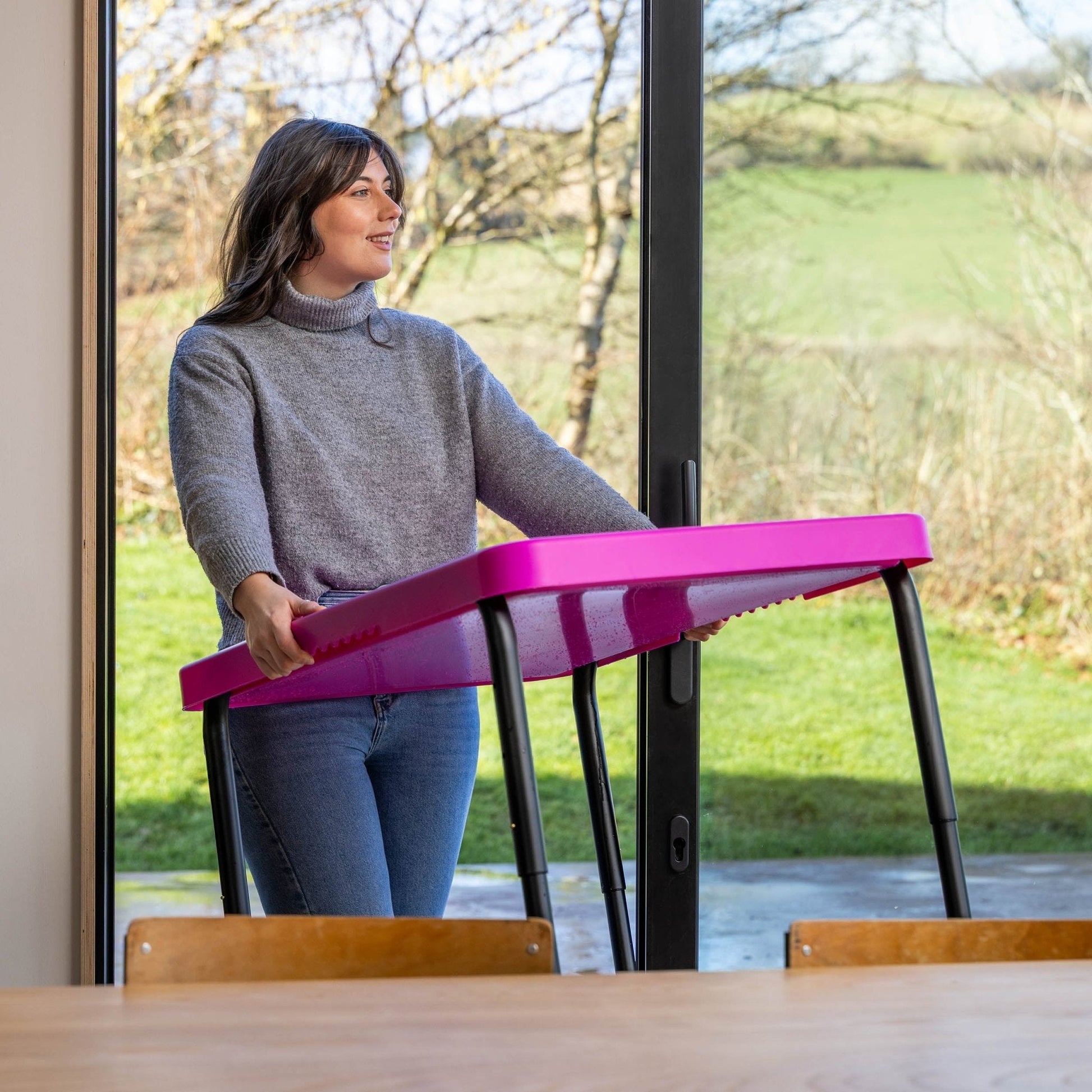 Toyrific - Playhouse PlayTray (95cm) Set - Speeltafel roze + Verstelbaar onderstel H 48-55-63cm