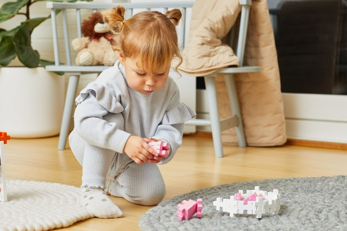 • Groot formaat – grote bouwblokken die makkelijk vast te pakken zijn door kleine handen.