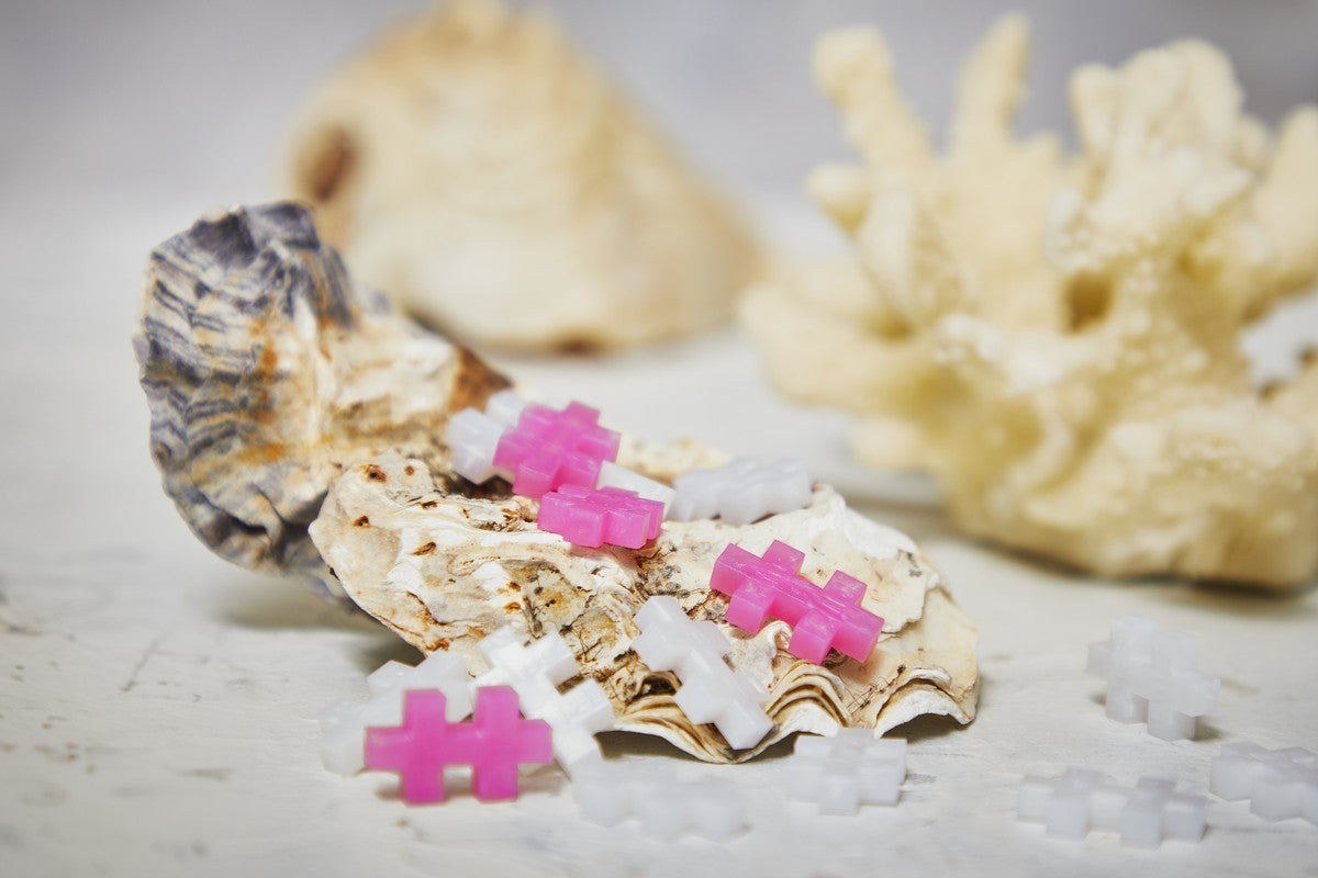 - Bevat 240 Plus‑Plus stukjes in zachte, glanzende kleuren zoals vanilla, wit, apricot, groen, paars en flamingoroze