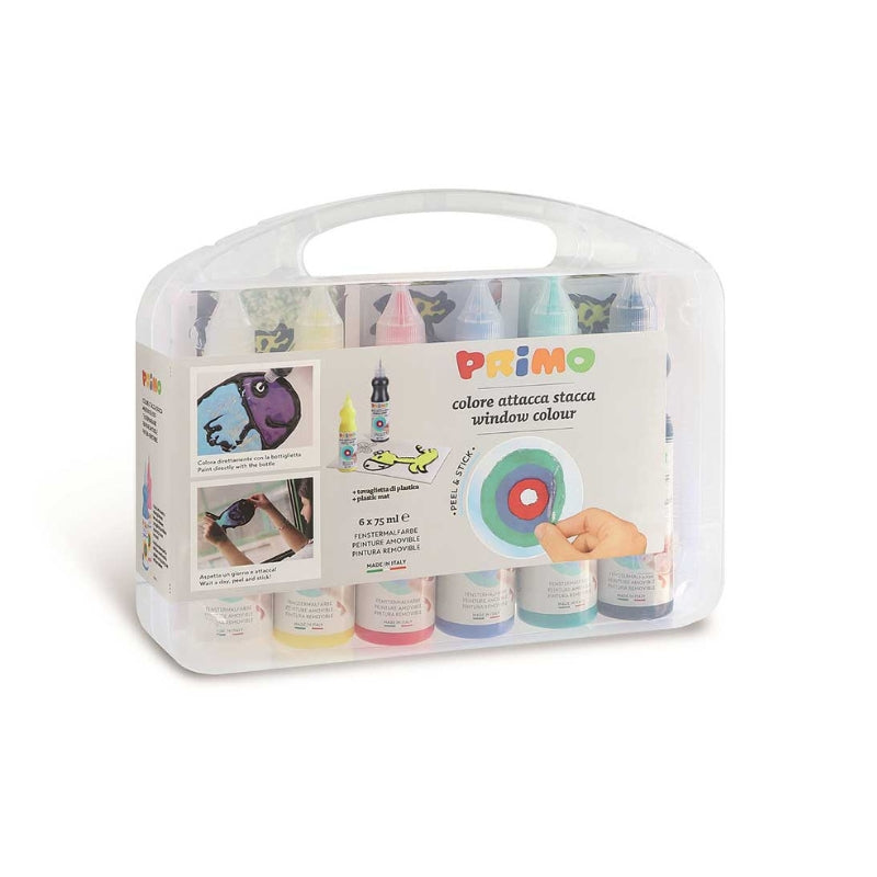 Deze vrolijke raamverfset bestaat uit 6 prachtige kleuren. Combineer deze voor een vrolijk raam-kunstwerk! Leuk idee om met thema's te werken zoals; sinterklaas, verjaardagen, pasen. Kinderen kunnen natuurlijk ook hun eigen fantasie verbeelden! Elk flesje bevat 75 ml verf met een handige tuit van het merk Primo.