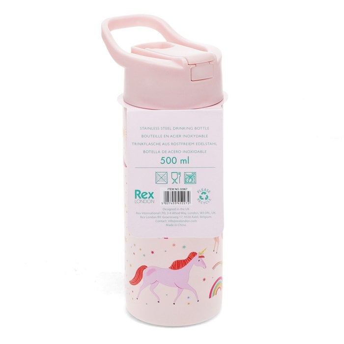 De Rex London RVS Drinkfles Unicorn heeft een inhoud van 500 ml en is ontworpen met een handig drukknopdeksel. Door de geïntegreerde rietje is deze fles ideaal voor kinderen thuis, op school of onderweg.