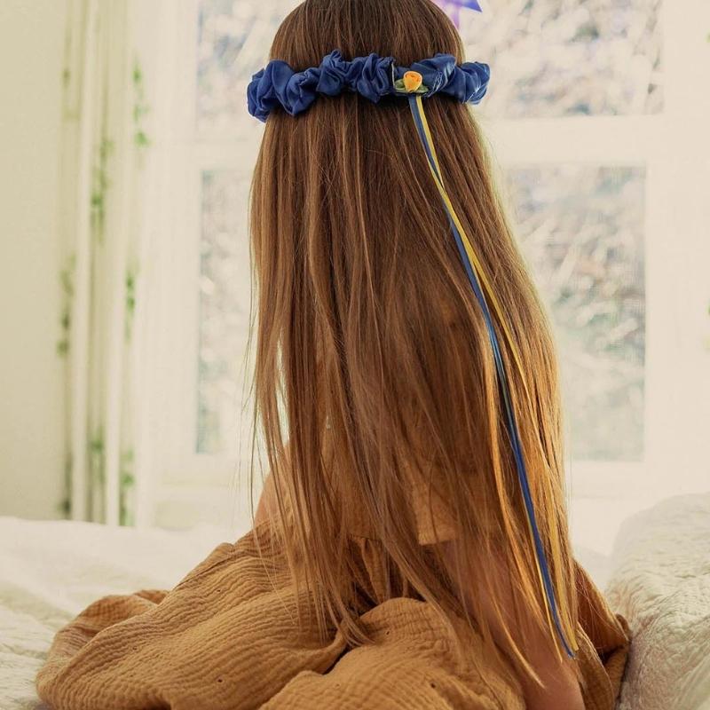 Mooie hoofdband met sterren van Sarah's Silk. Deze hoofdband maakt van iedere outfit iets bijzonders. Draai rondjes of dans door de kamer. De slingers dansen achter je aan. Deze band is elastisch en past daardoor makkelijke om het hoofdje van je kind. Hij is afgewerkt met een satijnen roos en slingers.