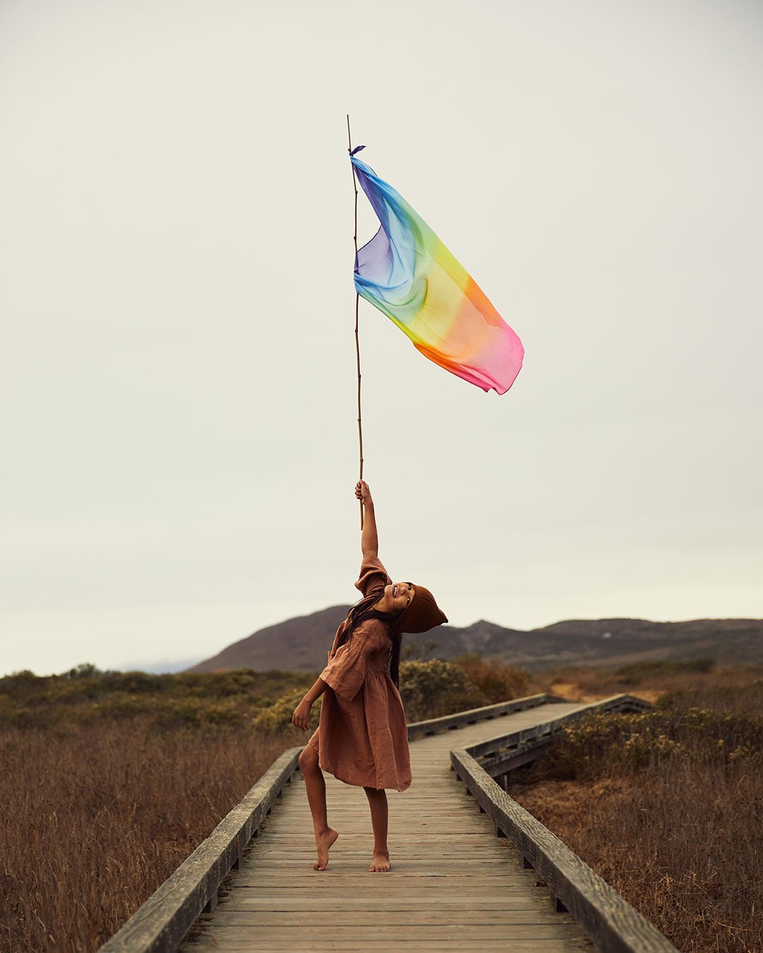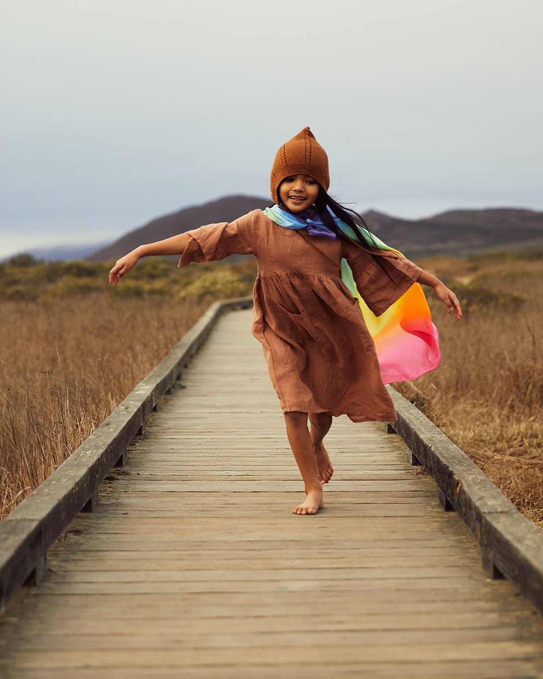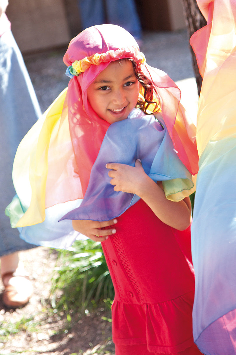 Speelzijde dient als verkleedkleding, als een dak van je huis, de sterrenhemel, een kleed, een tent, als deken, om te decoreren of gewoon om lekker mee te spelen tijdens het dansen, het rennen en te laten waaien door de wind.