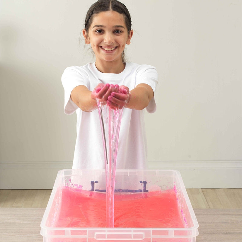 De slijm ontstaat door het poeder te mengen met warm water tot het slijm wordt. Een zakje van 50 gram is genoeg voor 10 liter water. Als je klaar bent met spelen voeg je eenvoudig nog meer water toe tot het genoeg verdund is, dan kan het zo weggespoeld worden.