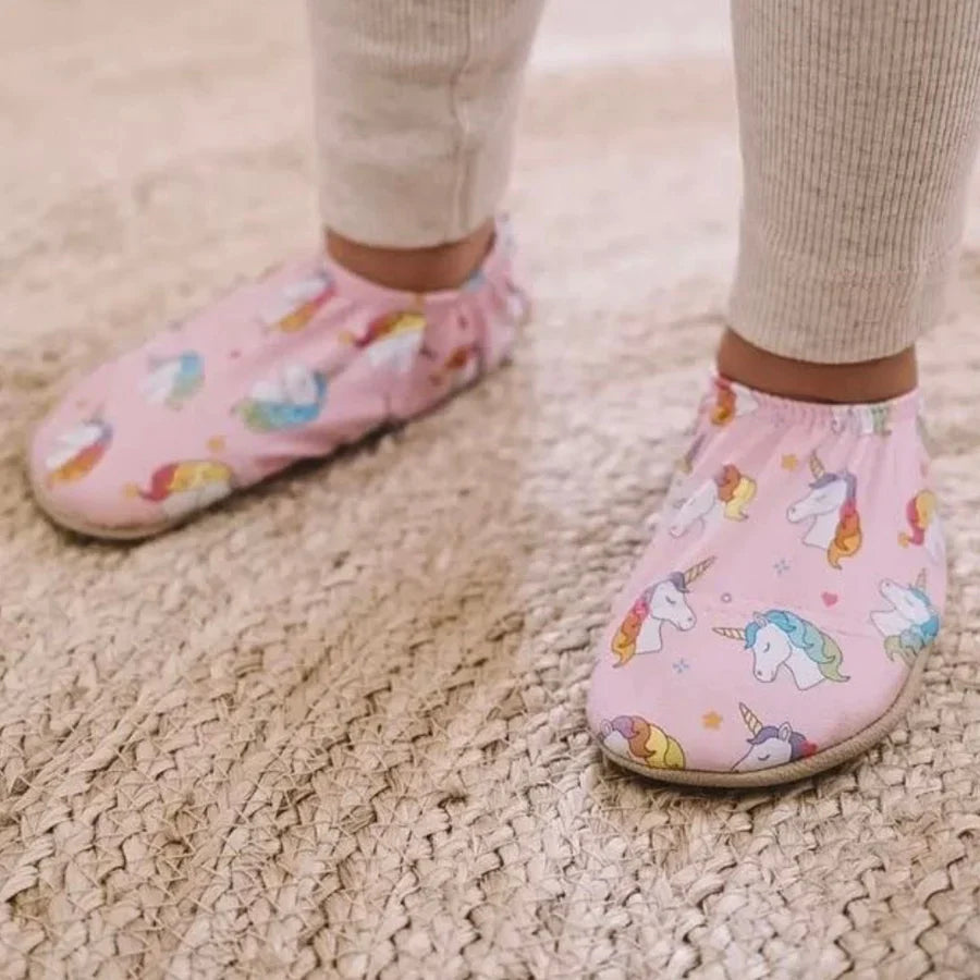 Uitglijden in het zwembad is verleden tijd met deze vrolijke -multifunctionele - antislip schoentjes van Slipstop! De schoenen zijn veelzijdig inzetbaar, zowel binnen als buiten. Gebruik ze als antislipschoen bij het zwembad, badkamer, tijdens dansles of gymles of als flexibele schoen in de speeltuin. De schoentjes zijn flexibel, comfortabel en sneldrogend. Door het elastiek rond de enkel zijn ze makkelijk aan te trekken en blijven ze goed zitten. Ze beschermen de voeten van de kinderen ook tegen de zon met een UPF waarde van 50+. De zool houdt warmte tegen, waardoor de schoentjes ook fijn te gebruiken zijn op hete (terras)tegels en verbranden haast niet mogelijk is.