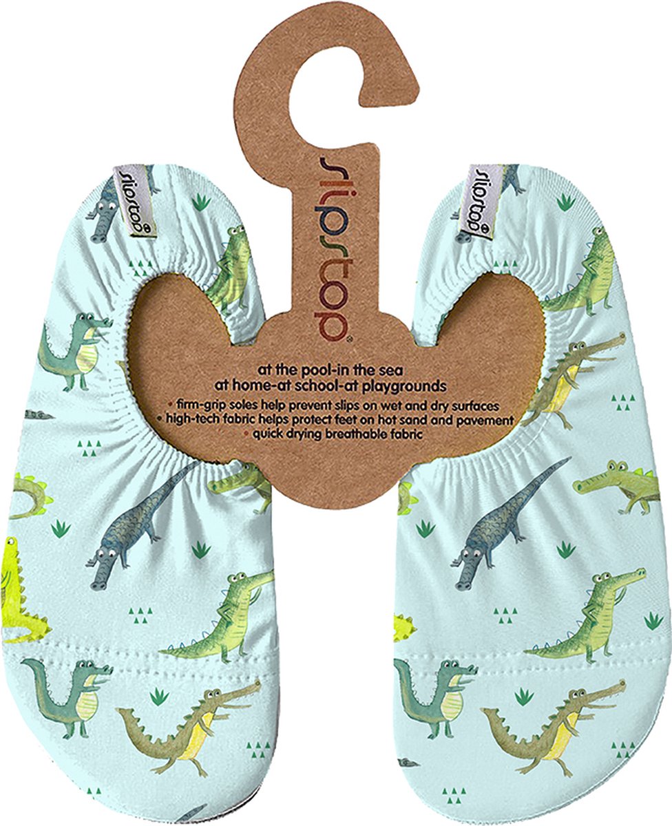 Uitglijden in het zwembad is verleden tijd met deze vrolijke -multifunctionele - antislip schoentjes van Slipstop! De schoenen zijn veelzijdig inzetbaar, zowel binnen als buiten. Gebruik ze als antislipschoen bij het zwembad, badkamer, tijdens dansles of gymles of als flexibele schoen in de speeltuin. De schoentjes zijn flexibel, comfortabel en sneldrogend. Door het elastiek rond de enkel zijn ze makkelijk aan te trekken en blijven ze goed zitten. Ze beschermen de voeten van de kinderen ook tegen de zon met een UPF waarde van 50+. De zool houdt warmte tegen, waardoor de schoentjes ook fijn te gebruiken zijn op hete (terras)tegels en verbranden haast niet mogelijk is.