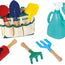 Houd alle tuingereedschap bij de hand in deze tuintas. De tas bevat 4 soorten schepjes en 2 harkjes van hout en metaal. Verder bevat de set een gieter met een plantenspuit van stevig kunststof. Plaats het gereedschap in de vakken of achter het elastiek van de stevige tas, en het avontuur kan beginnen. Wat wordt de tuin mooi! Spelen met de set stimuleert beweging en de ontwikkeling van fantasie.