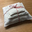 Deze zakjes in een set van 3 zijn gemaakt van ongebleekte katoen. Door de verschillende afmetingen en vulling hebben ze een ander soortgelijk gewicht. De grootste is gevuld met kersenpitten, de middelste met zand en de kleinste met rijst. Ze zijn gemaakt met de hand en kunnen daardoor onderling wel kleine variaties hebben qua afwerking, maten en gewicht. Ook kan het zandzakje zwaarder worden als deze vochtig is geworden, maar dat is tegelijk ook een leuk leer element voor kinderen.
