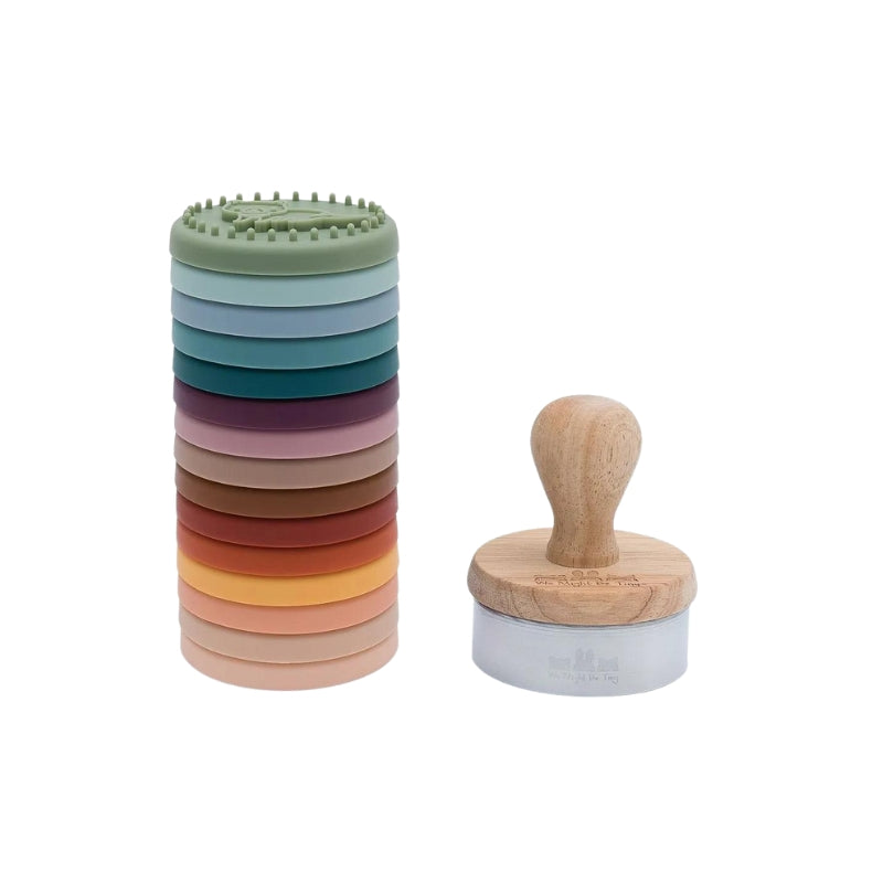 De stempels zijn gemaakt van siliconen. Siliconen is een duurzaam natuurlijk materiaal welke voedselveilig en BPA vrij is. Daarnaast kunnen de stampies tegen zowel vriestemperaturen als stijgende hitte (-40 °C tot 230 °C). De siliconen vormen kunnen in de vaatwasser zodat ze in een handomdraai weer schoon zijn.