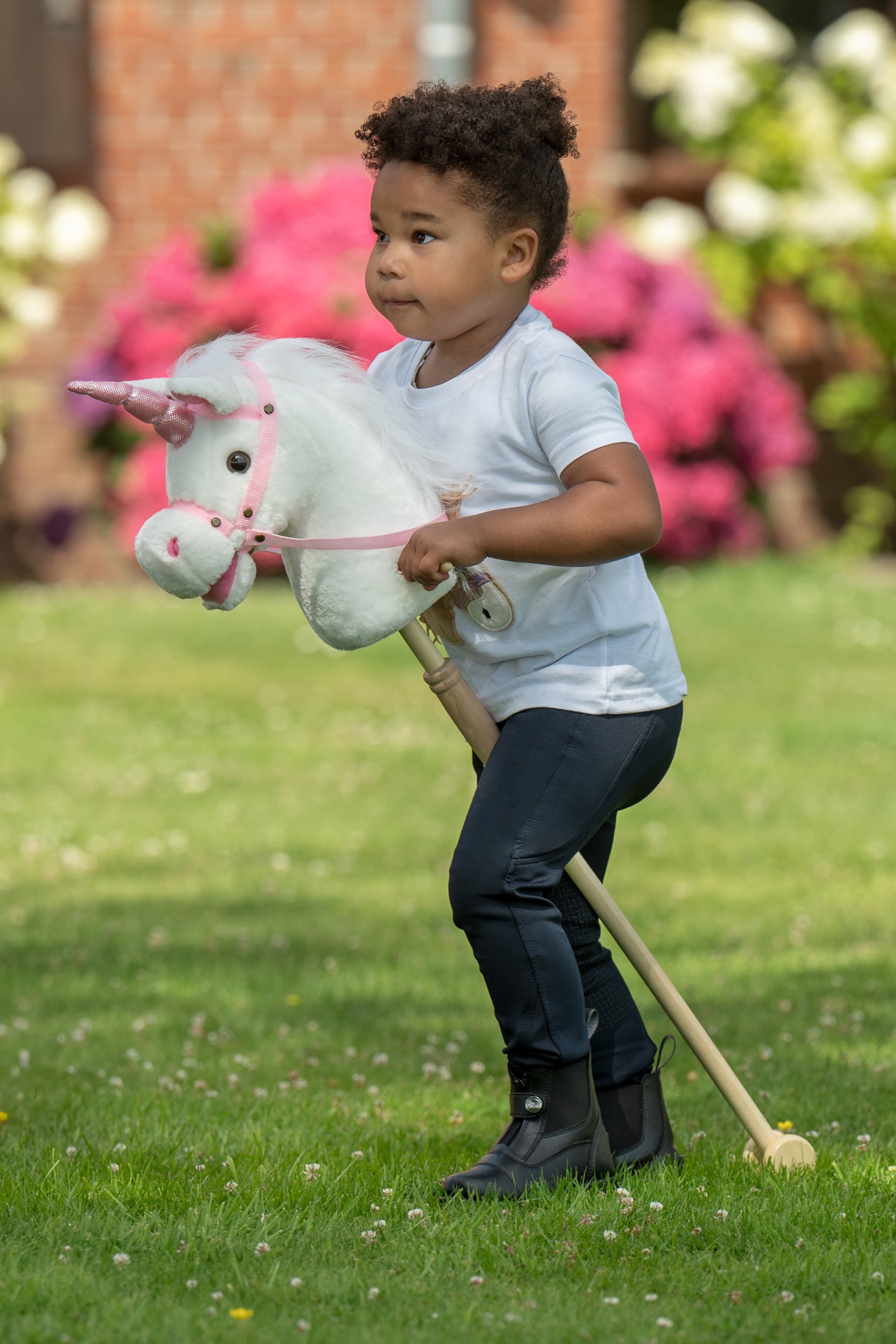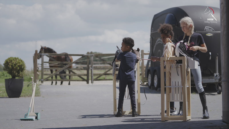 Met het Hobby Horse stokpaard met geluid wordt paardrijden als hobby nog realistischer. Het stokpaard heeft een polyester hoofd en een stevige niet-schroefbare houten stok van circa 100 cm. Voorzien van handgrepen en teugels voor goed houvast en met een geluidsfunctie in het oor (hinniken en galopperen). Werkt op batterijen, die worden meegeleverd.