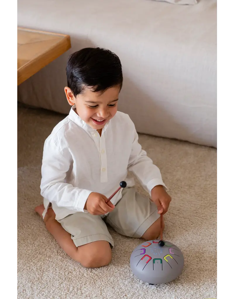 De Baby Tambú – 8 tonen – Smoky Loky is een compact en gebruiksvriendelijk muziekinstrument, speciaal ontworpen om jonge kinderen op een speelse manier kennis te laten maken met muziek. Dankzij het kleur gecodeerde nummersysteem kunnen kinderen eenvoudig hun eerste melodieën spelen, zonder enige muzikale ervaring.