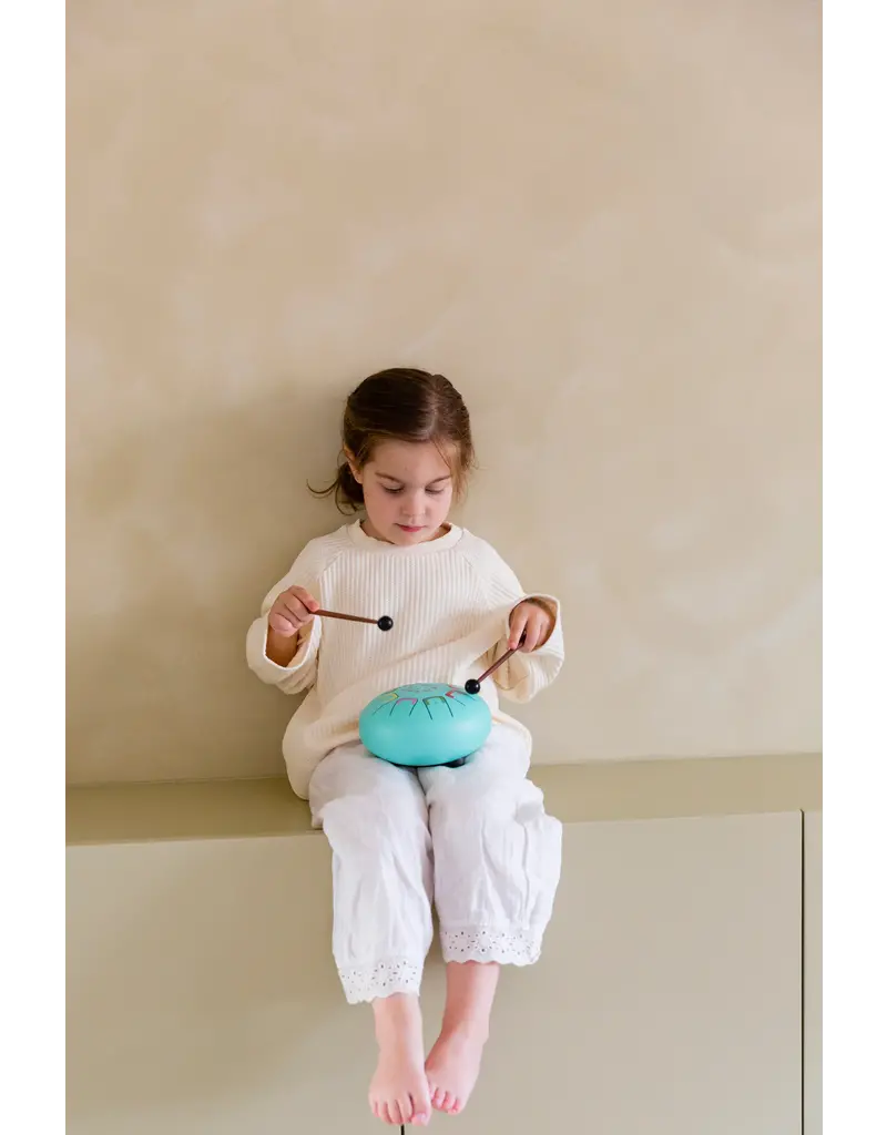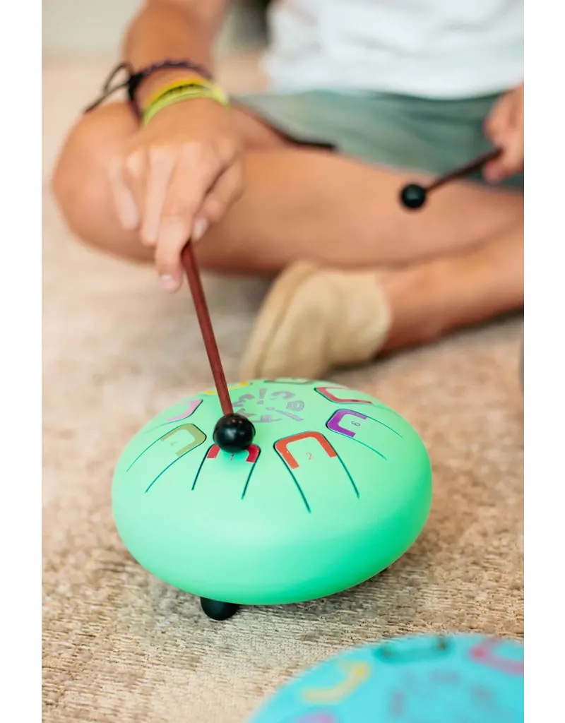 De Baby Tambú – 8 tonen – Teal Peal is een compact en gebruiksvriendelijk muziekinstrument, speciaal ontworpen om jonge kinderen op een speelse manier kennis te laten maken met muziek. Dankzij het kleur gecodeerde nummersysteem kunnen kinderen eenvoudig hun eerste melodieën spelen, zonder enige muzikale ervaring.
