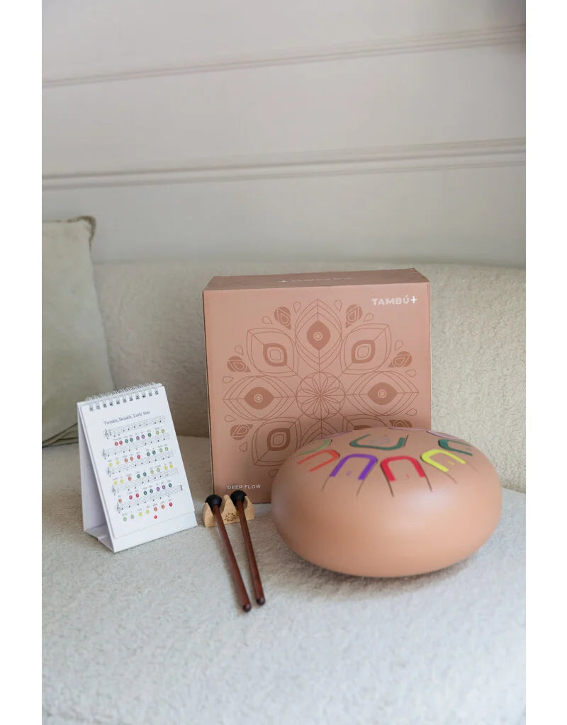 De Tambú+ – Deep Flow is een speciale editie van de Tambú+ tongdrum, ontworpen voor innerlijke rust en muzikale expressie. De warme terracotta kleur straalt balans en zelfontdekking uit, terwijl het grotere formaat en de resonante stemming in F een diepere en rijkere klank opleveren.