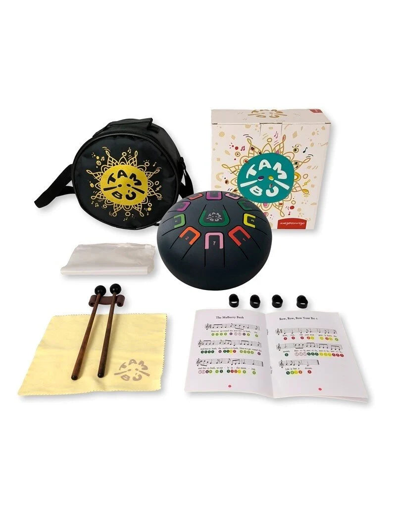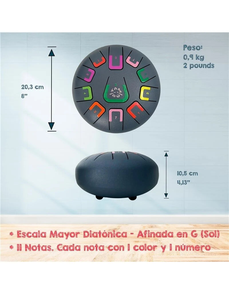 Met de TAMBÚ Steel Tongue Drum ontstaat een unieke muzikale ervaring. Dit metalen percussie-instrument heeft 11 tonen in G majeur en produceert warme, resonerende klanken. Ideaal voor ontspanning, meditatie en muziektherapie.