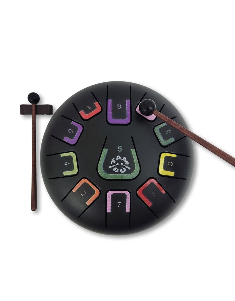 Met de TAMBÚ Steel Tongue Drum ontstaat een unieke muzikale ervaring. Dit metalen percussie-instrument heeft 11 tonen in G majeur en produceert warme, resonerende klanken. Ideaal voor ontspanning, meditatie en muziektherapie.