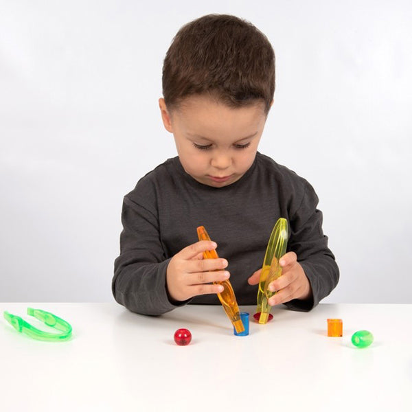 Gekleurde leuke pincetten, geweldig voor het ontdekken van kleuren door licht en een ideale afmeting voor kinderen om mee te werken. Te gebruiken voor het oppikken van klein speelmateriaal om te sorteren of bij het maken van patronen om de kracht in de vingers en de handen te verbeteren, coördinatievaardigheden te ontwikkelen en te leren over het mengen van kleuren.