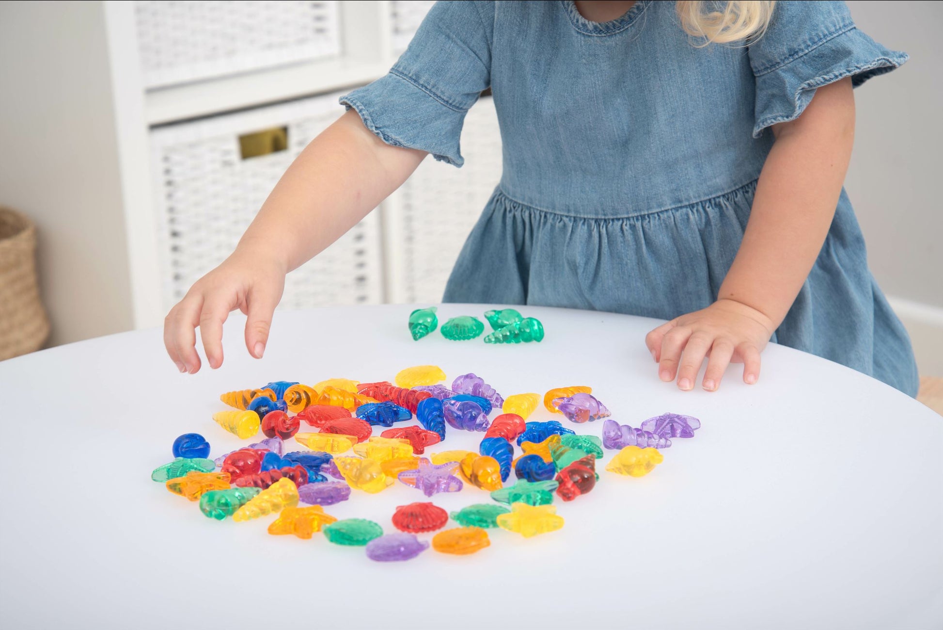 Kom dichter bij de kust met onze TickiT® Translucent Colour Shells. Onze schelpvormen zijn kleurrijk en gedetailleerd en ideaal voor tellen, sorteren, patronen maken of plezier maken met rekenactiviteiten. je kind kan zeesterren, spiralen, mosselen of schelpdieren optellen, aftrekken, delen of vermenigvuldigen. De doorschijnende eigenschappen maken ze ideaal voor gebruik met een lichtpaneel om de verbeelding van je kind te prikkelen en kleuren en de voelbare markeringen op elke vorm te verkennen.