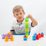 Kleine stapelbare potten met deksels in zes licht doorlatende tinten zijn ideaal voor gebruik bij verkennend spel, voor kleurenmenging en -matching en als stapelactiviteit om logisch denken aan te spreken en coördinatie te
