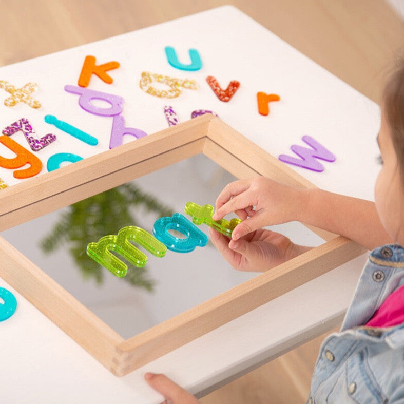 Deze TickiT set bevat 26 letters in 7 regenboogkleuren. Het kindvriendelijke lettertype helpt jongere kinderen de letters van het alfabet te herkennen en alle klinkers zijn turkoois waardoor kinderen het verschil leren tussen klinkers en medeklinkers. Trek de letters over of gebruik ze in combinatie met met een lichtpaneel.