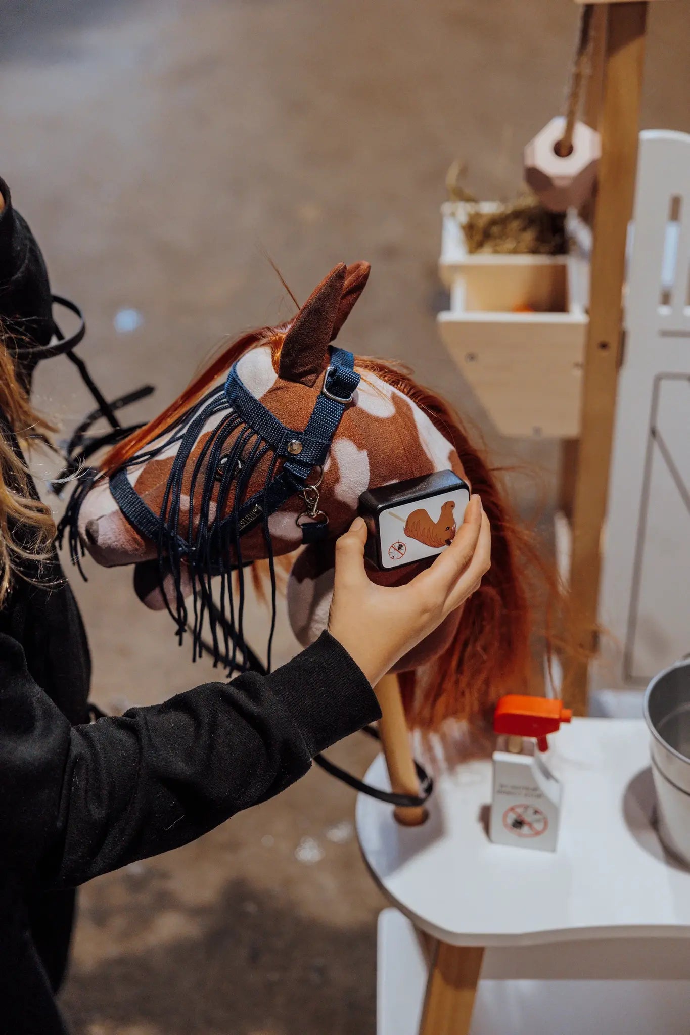 Dit speelgoed stimuleert niet alleen de fantasie, maar ook de fijne motoriek wanneer kinderen hun stokpaard verzorgen en aankleden. Een must-have voor elke serieuze Hobby Horse liefhebber!