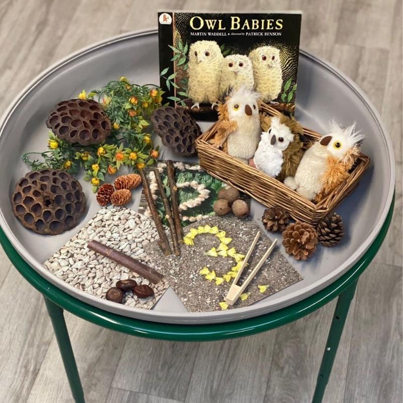 - Boek: gebruik een broek om een Tuff Tray thema te maken. Alle elementen uit het boek kunnen gebruikt worden op de tuff tray, denk aan een boek over dino- Small World Play: kinderen vinden het heerlijk om verhalen na te spelen die ze eerder hebben gehoord of om ze zelf te verzinnen. Door simpelweg je boerderij over te zetten naar je Tuff Spot Tray en een paar natuurlijke materialen zoals boomstammen, stokken en stenen van buiten toe te voegen, wordt deze wereld echt magisch. Of bouw een prachtig sprookjes- en elfendorp.