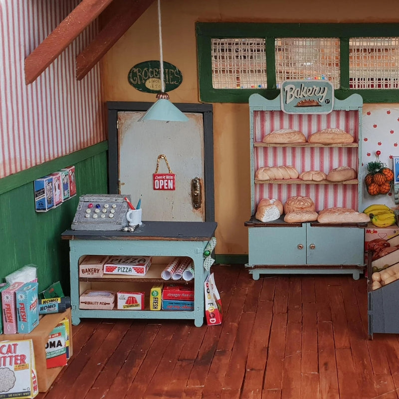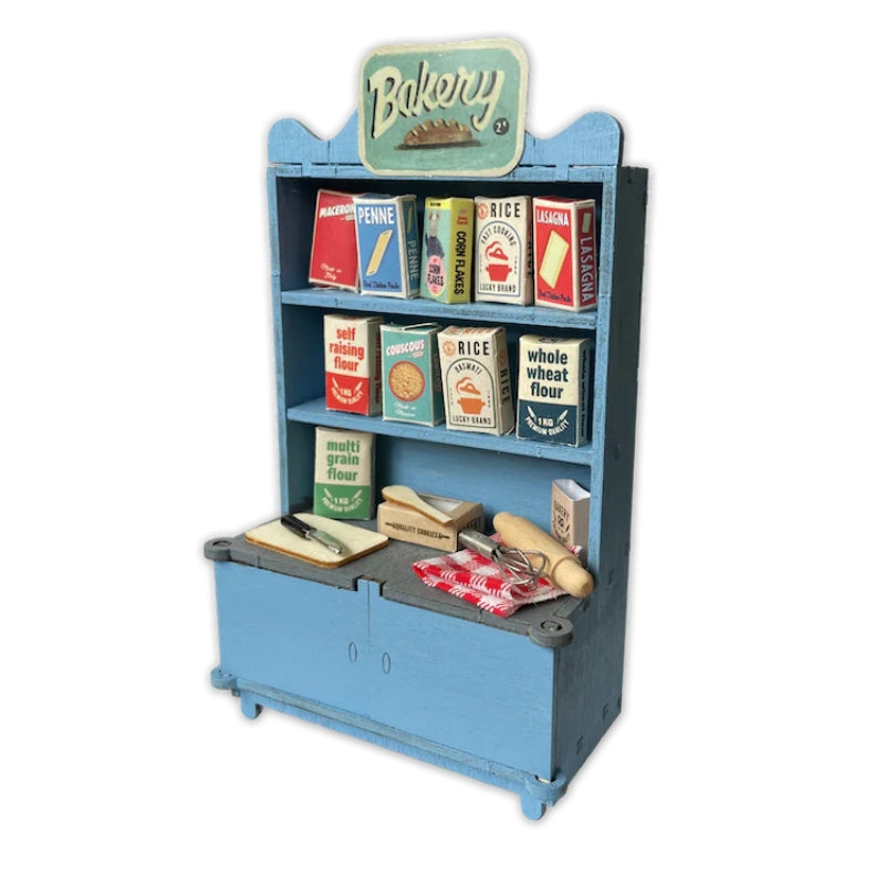 Inhoud: voorraadkast, toonbank, kassa, dubbele grutterskast, enkele grutterskast, wandplanken, handleiding, schuurpapier