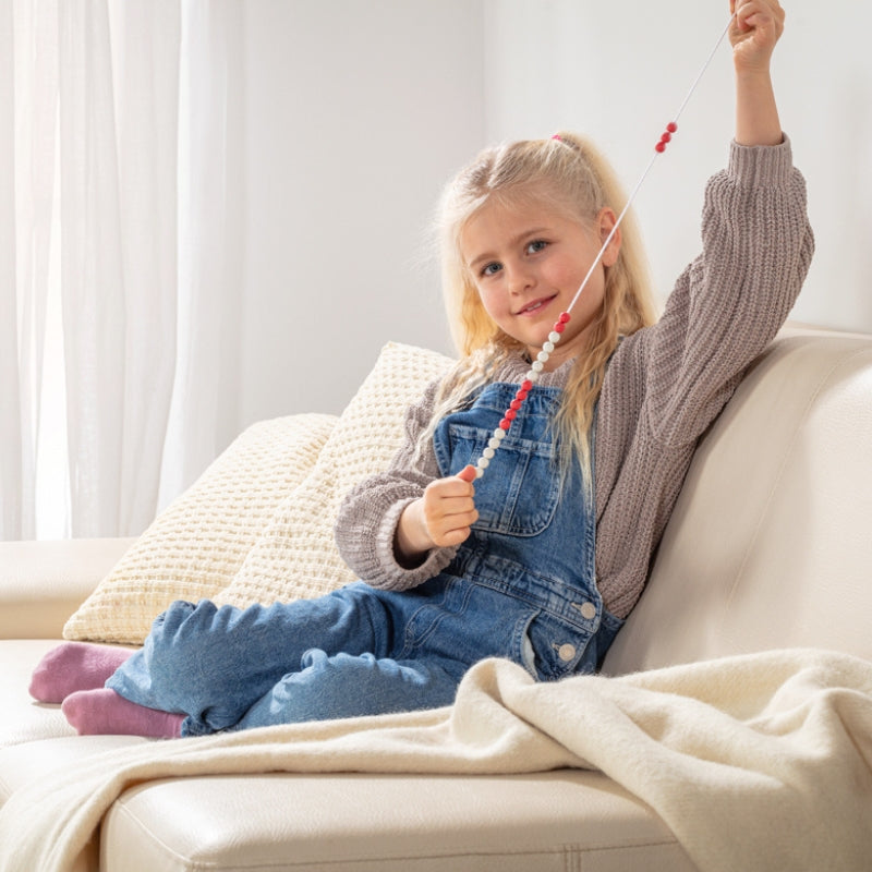 Deze rekenketting heeft 20 kralen in een mooie witte en rode kleur. Het is het perfecte hulpmiddel om een kind tot 20 te leren tellen. Met deze kleurrijke ketting krijgen kinderen een beter begrip van getallen en kunnen ze hun rekenvaardigheden op een leuke en educatieve manier verbeteren. Deze telketting is een goed hulpmiddel voor in het klaslokaal of in de thuisomgeving waar kinderen worden gestimuleerd om te leren tellen tot 20.