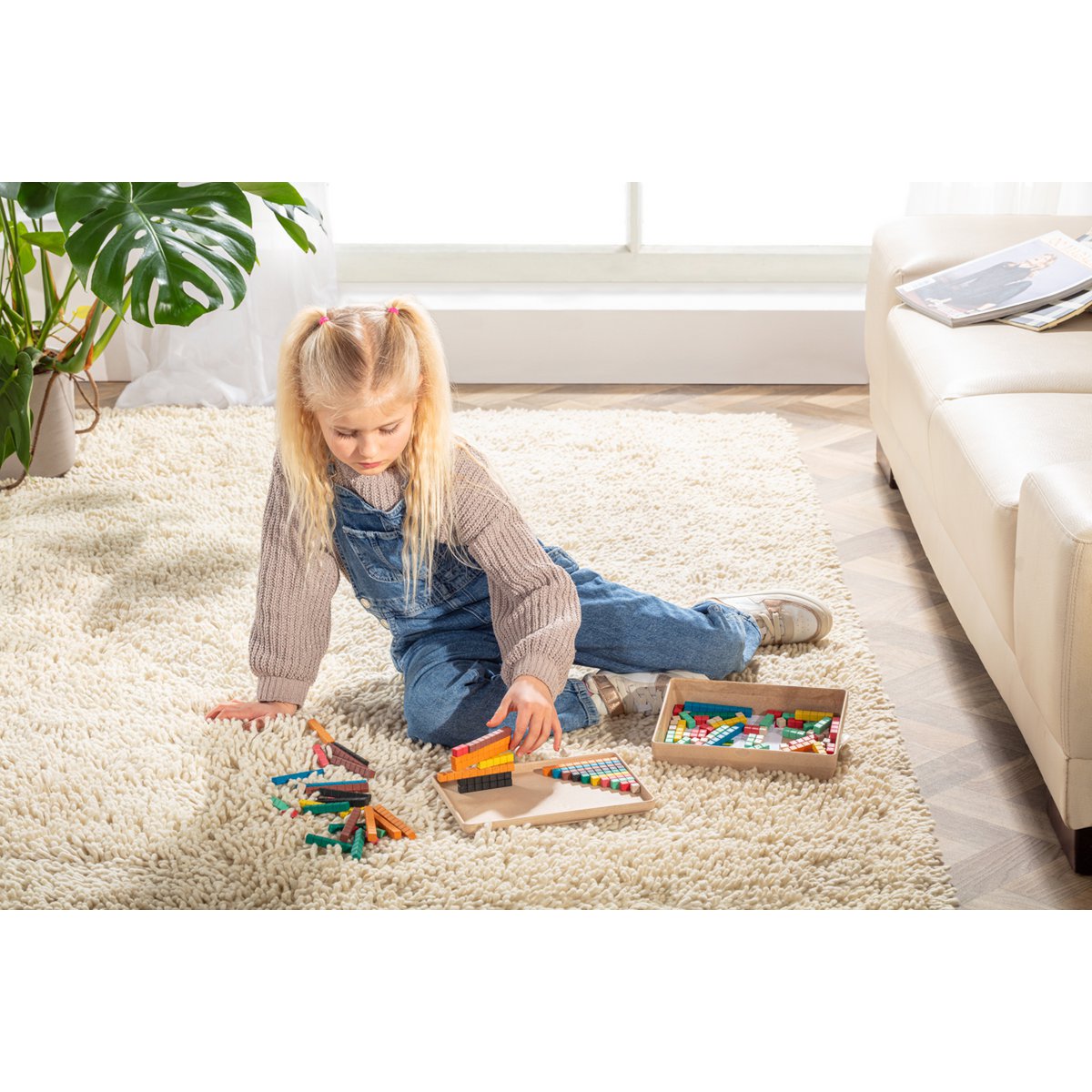 De RE-Wood Telform Cijfers – set van 126 staven is een hoogwaardige rekenhulp in de vorm van kleurrijke telstaven, perfect voor het ontdekken van getallen, breuken en basisbewerkingen. Gemaakt van gerecycled houtmateriaal (RE-Wood), biedt deze set een veilige en duurzame manier om spelenderwijs wiskundige concepten te verkennen — ideaal voor thuis, in de klas of in de Montessori-omgeving.