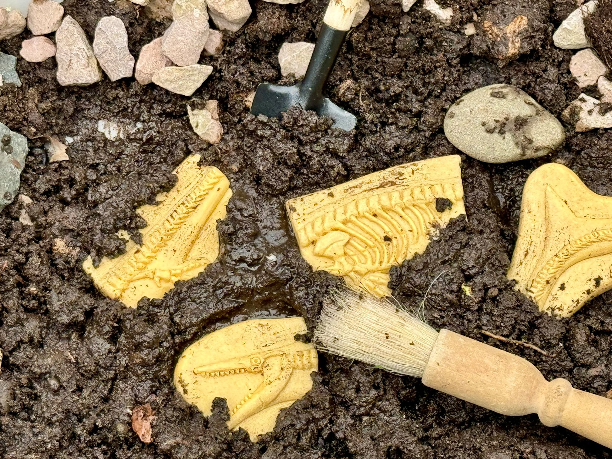 Te gebruiken als stempel in klei, kinetisch zand, als stempel met krijt of verstop ze.