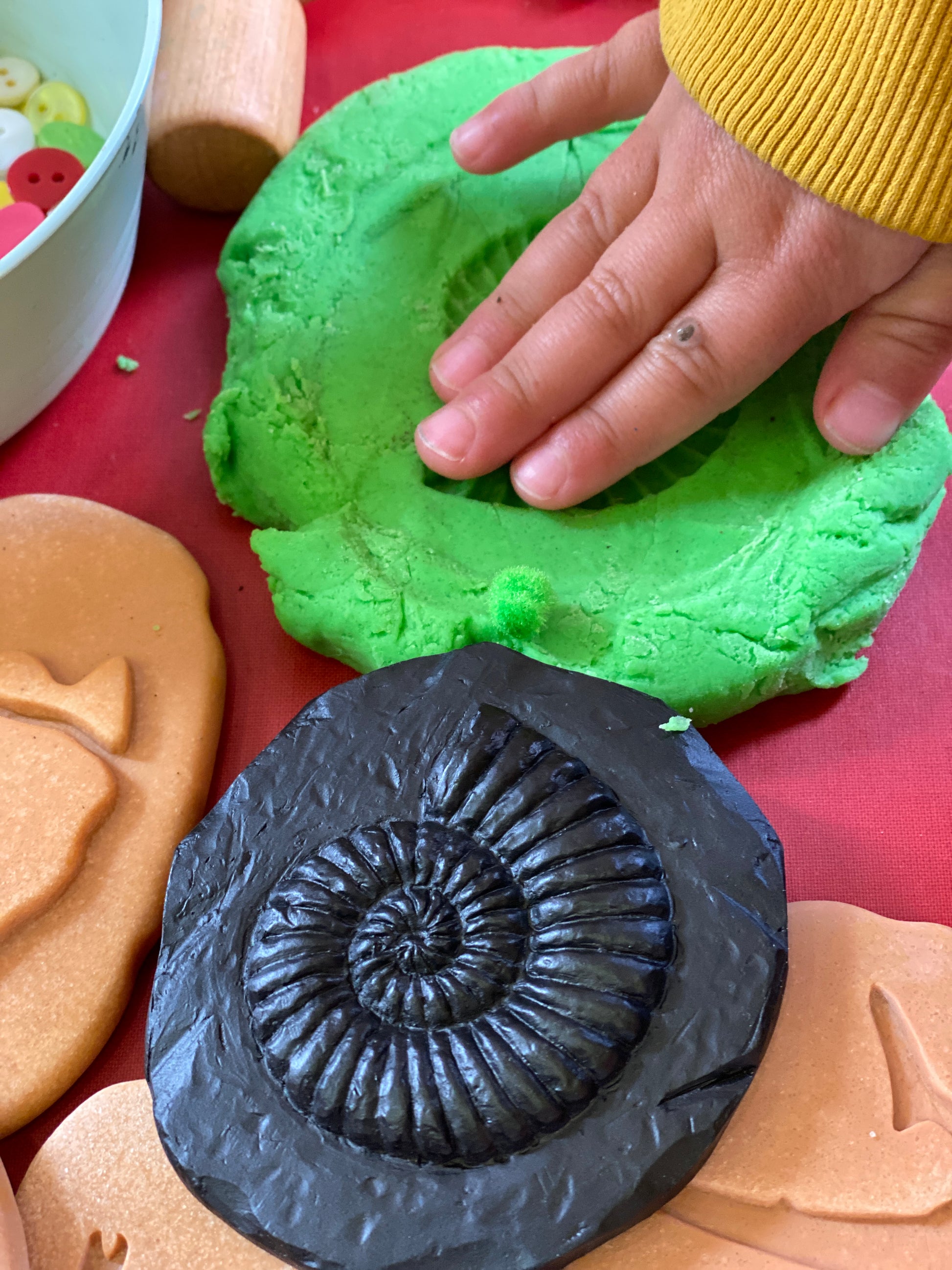 Met de Yellow Door Let's Investigate – Fossielen gaan kinderen op ontdekkingstocht naar het verleden. Deze set bestaat uit acht fossielen van duurzame steenmassa, perfect voor gebruik in zand, modder of water. Elk fossiel toont de afdruk van een dier of plant en nodigt uit tot natuuronderzoek en fantasierijk spel. Dankzij het stevige materiaal zijn de fossielen geschikt voor binnen- en buitenspel, en eenvoudig schoon te maken.