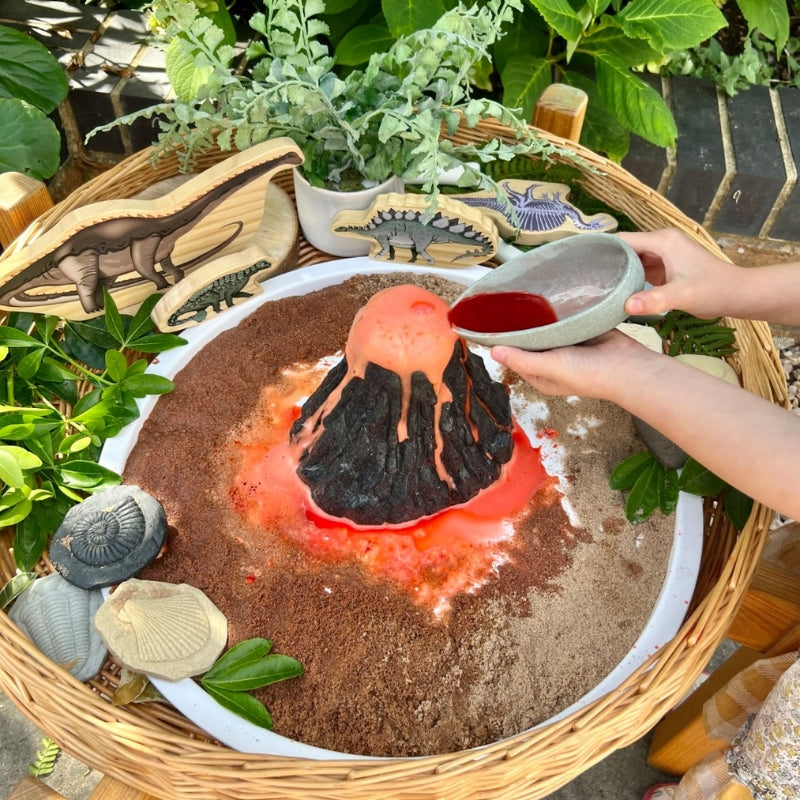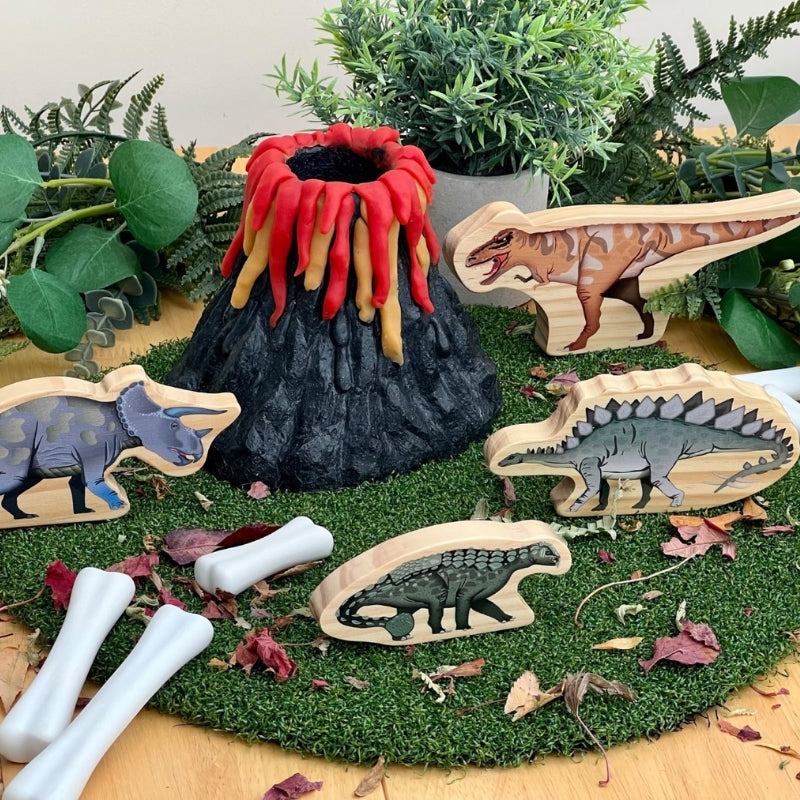De vulkaan heeft een ideaal formaat om te gebruiken in combinatie met de speelfiguren van Holztiger, Safari Ltd of ander dino speelgoed.